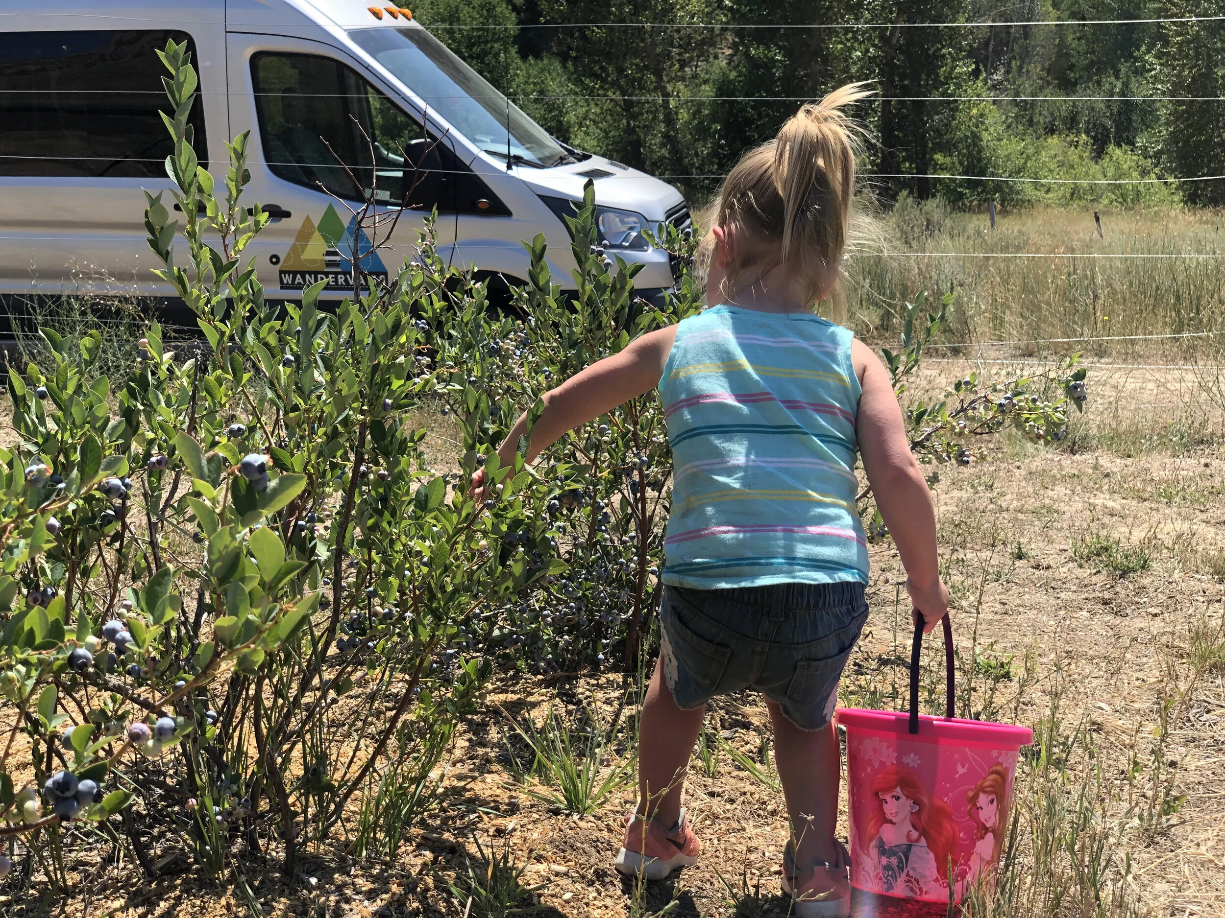 The blueberries will come in handy during your trip! There is something so fulfilling to children when they put in a little work and experience the fruits of their labor through eating something delicious. There are so few opportunities for our children to make that direct connection with nature. The simple task of picking berries and eating them the following day provides a unique learning experience that helps them better understand that fruit has to be grown and harvested and doesn’t always just show up magically via an Instacart delivery person.