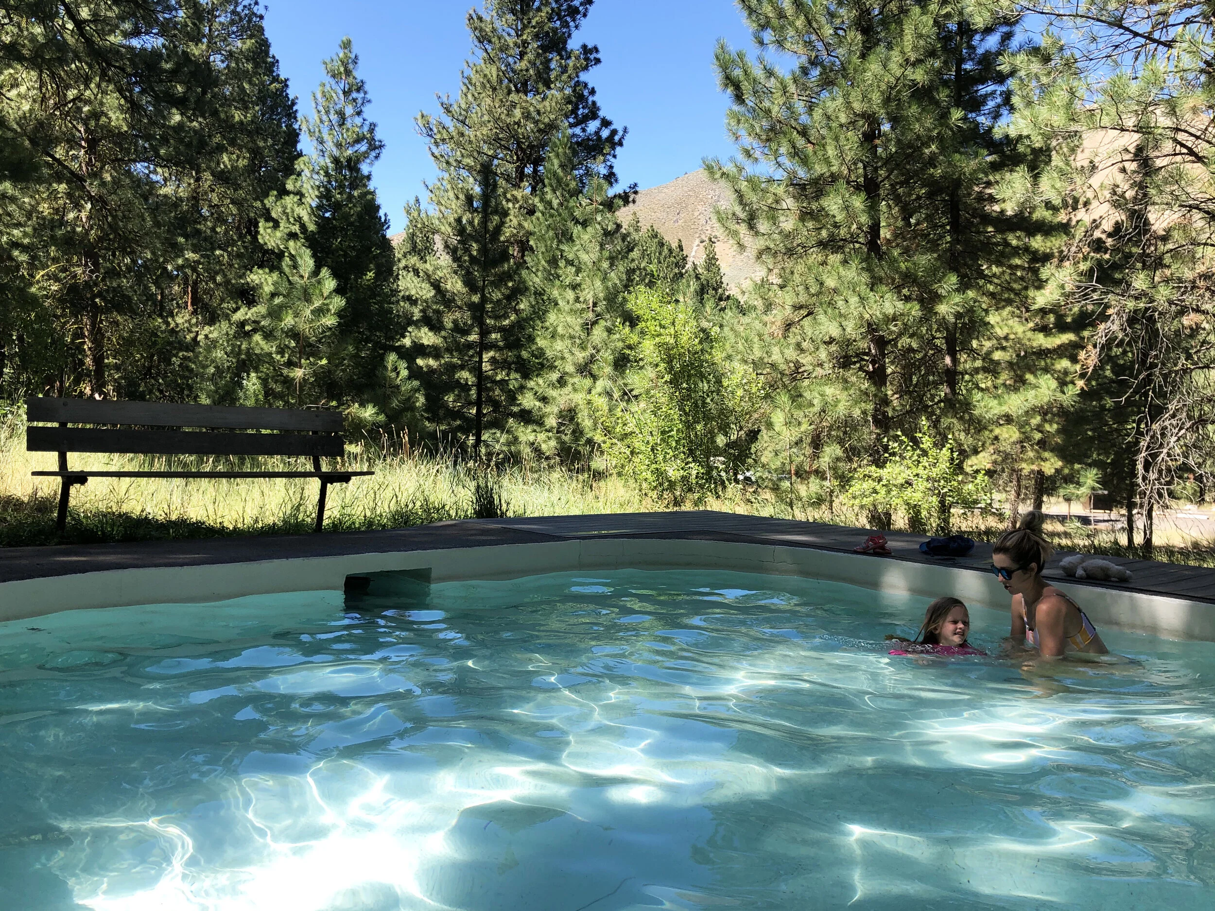 In addition, this campground has an inground hot tub/pool for swimming and soaking. The pool is pretty hot, so younger children may not last too long there.
